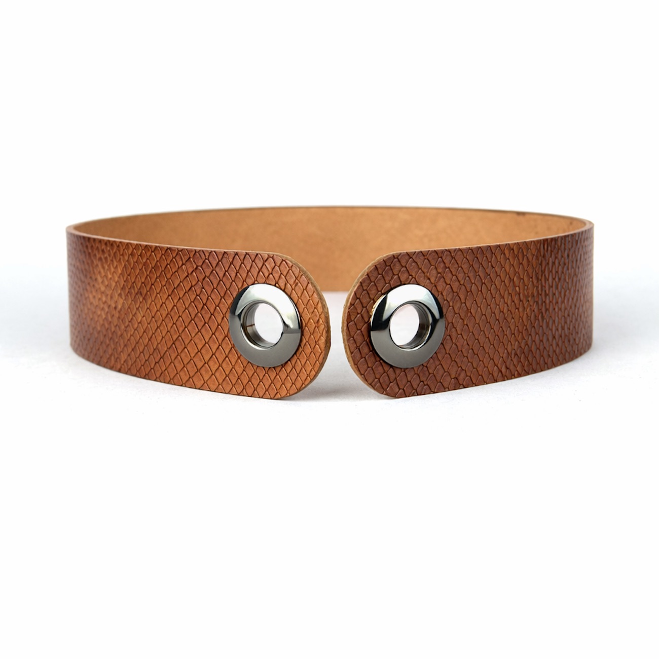 Dámsky úzky kožený opasok pre šatku – Hadí vzor hnedý, Ručná výroba na Slovensku