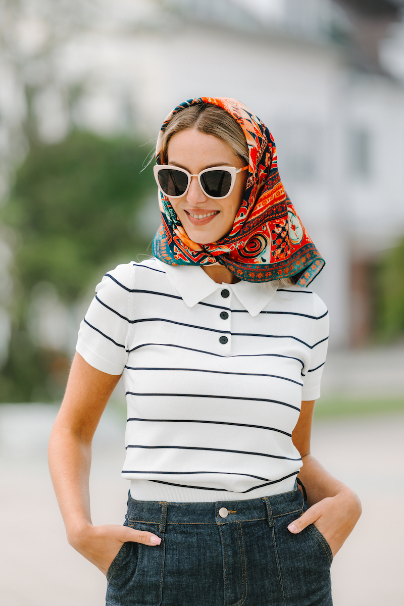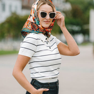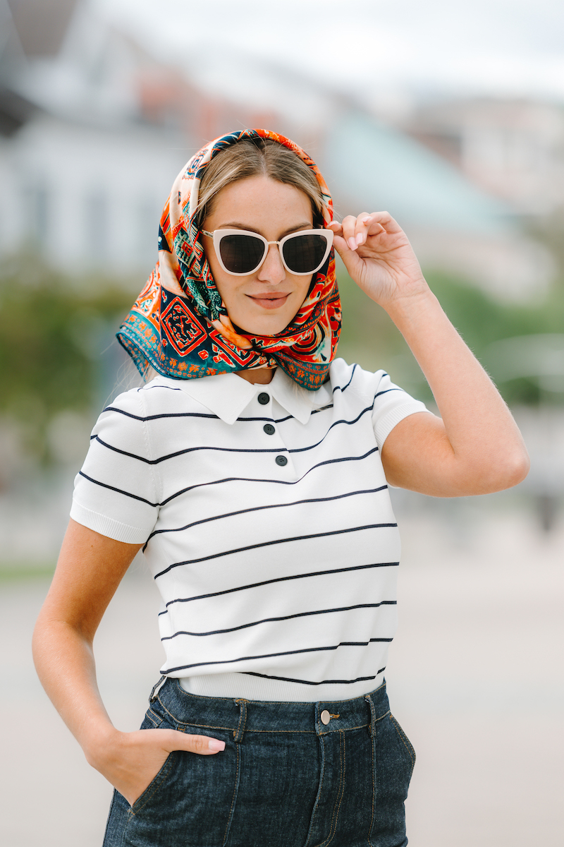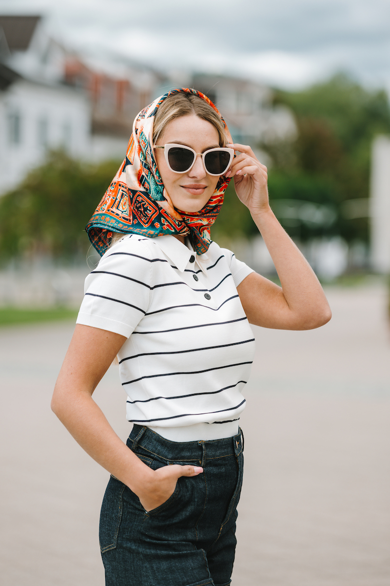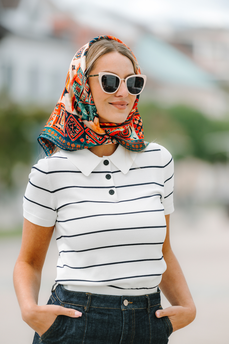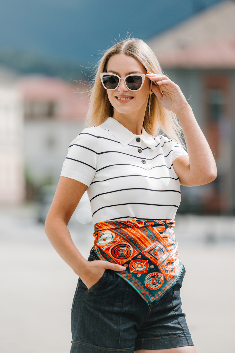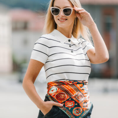 -klasická šatka okolo krku – vďaka vlastnostiam hodvábu je vhodné nosenie celoročne