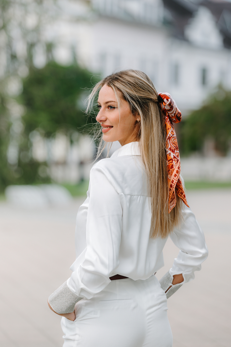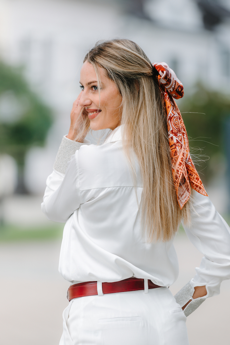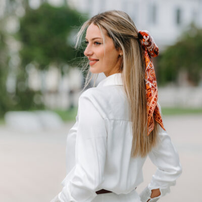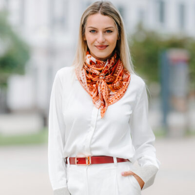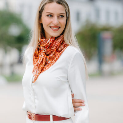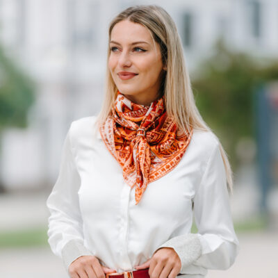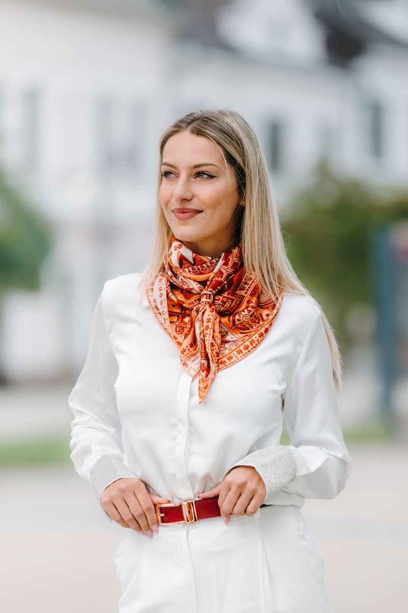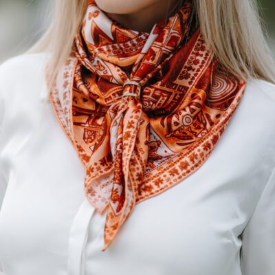 -klasická šatka okolo krku – vďaka vlastnostiam hodvábu je vhodné nosenie celoročne