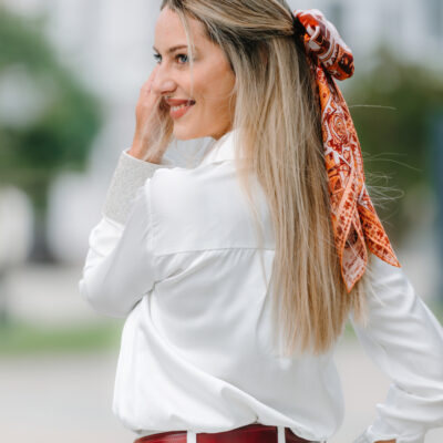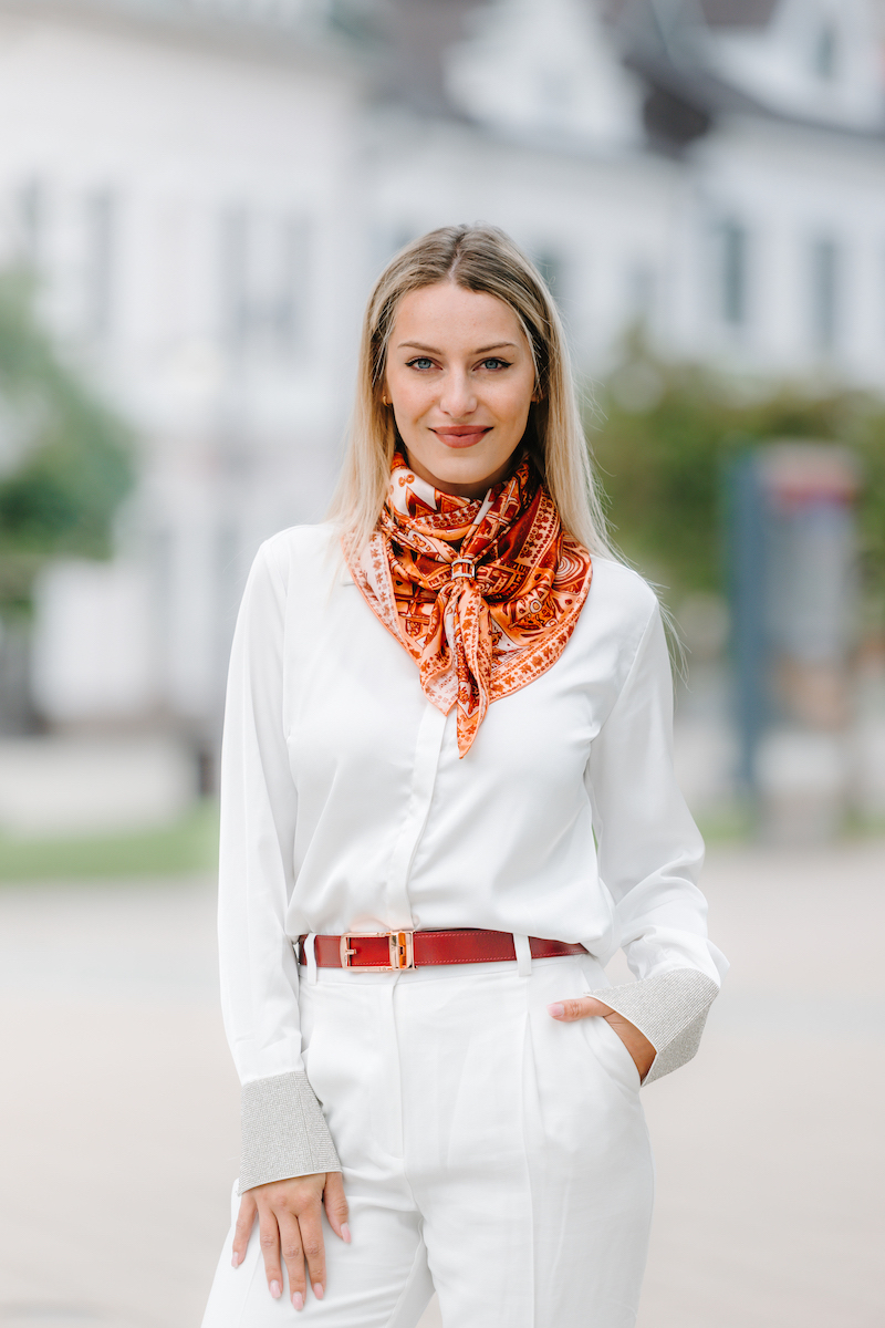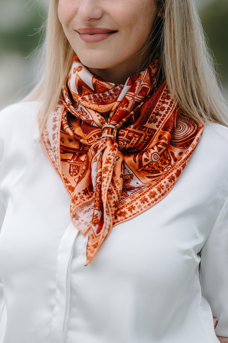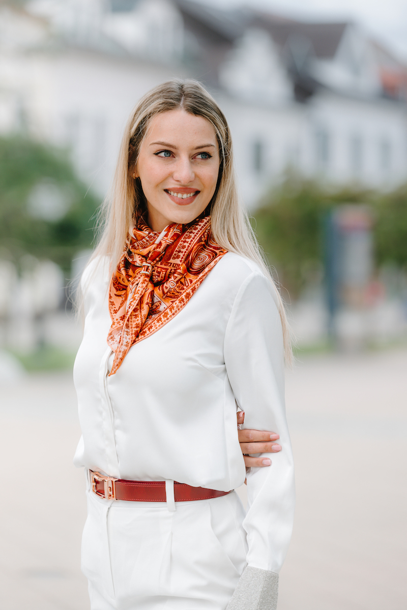-klasická šatka okolo krku – vďaka vlastnostiam hodvábu je vhodné nosenie celoročne