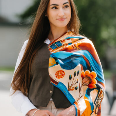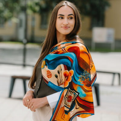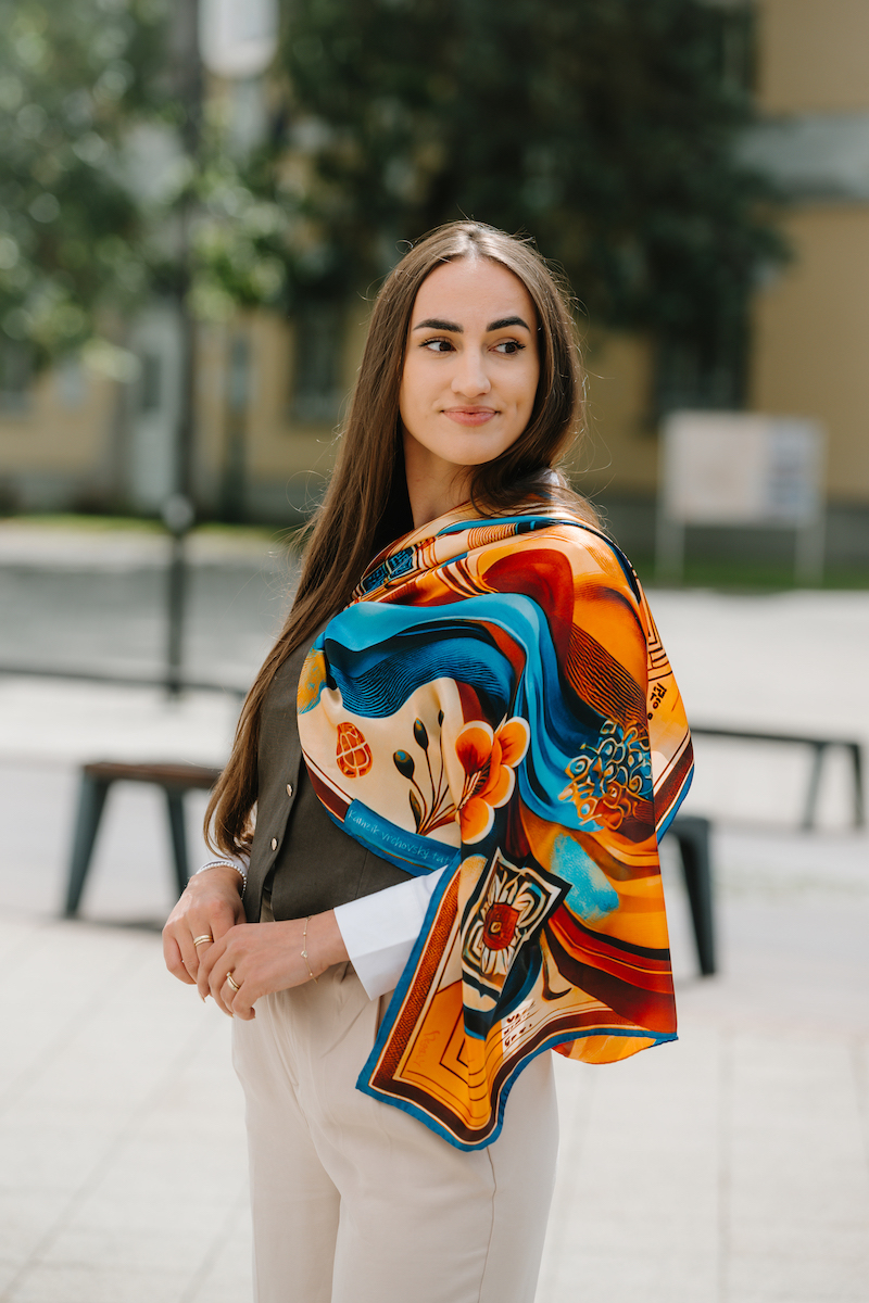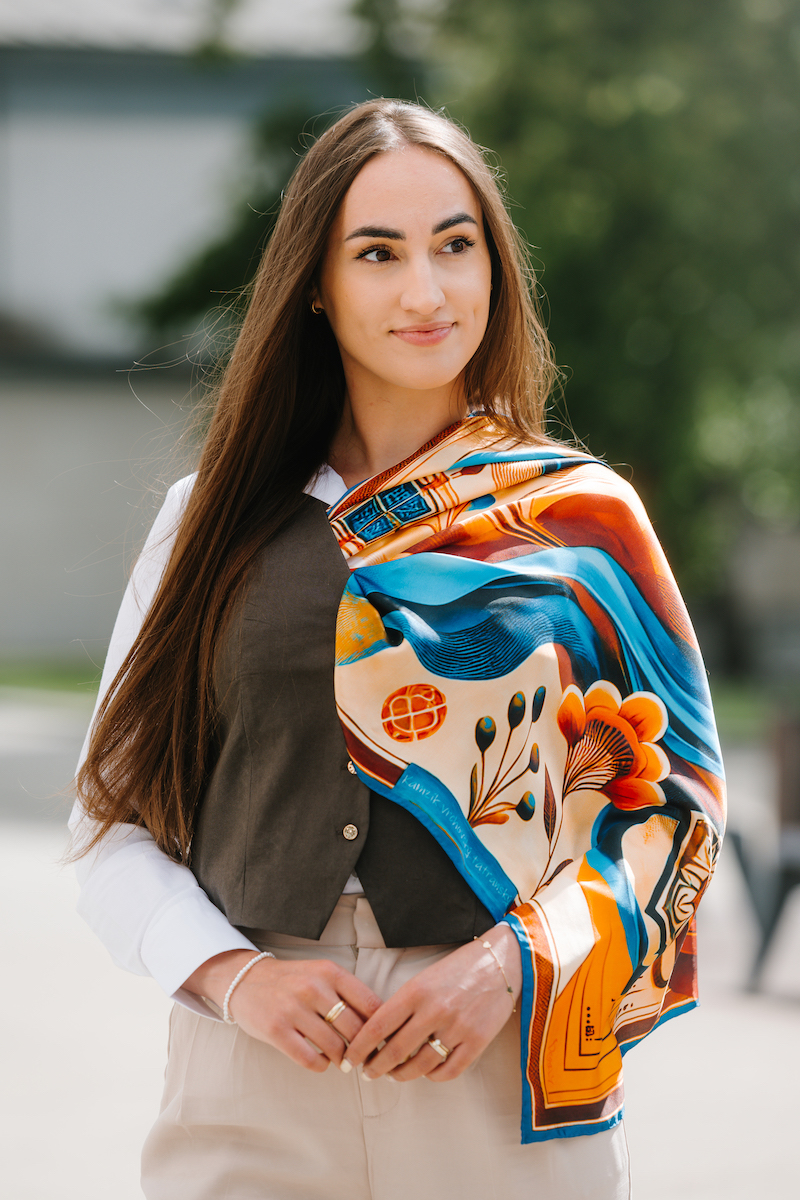 -klasická šatka okolo krku – vďaka vlastnostiam hodvábu je vhodné nosenie celoročne