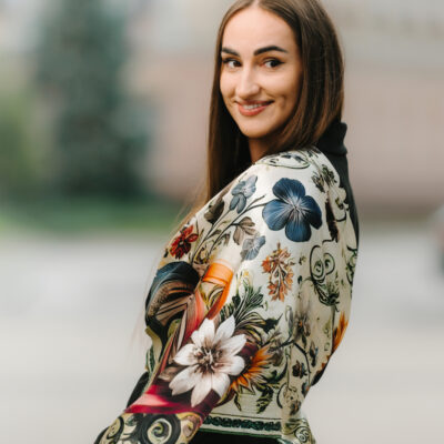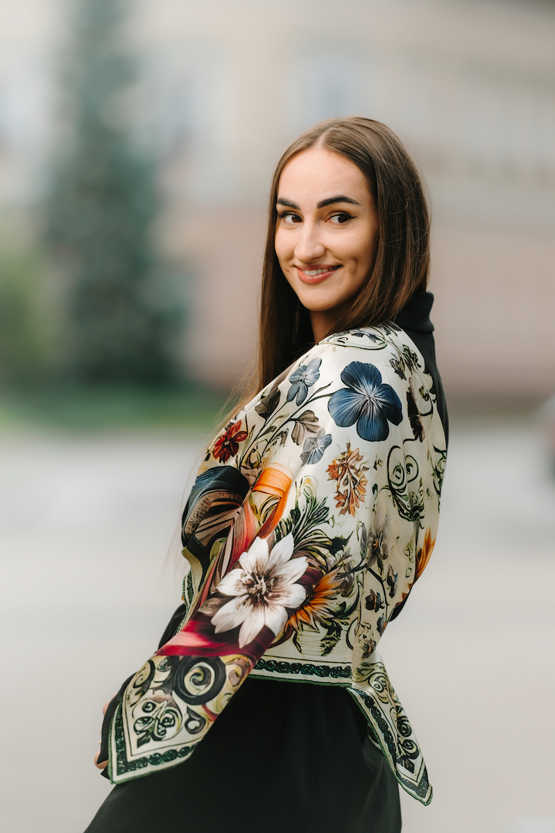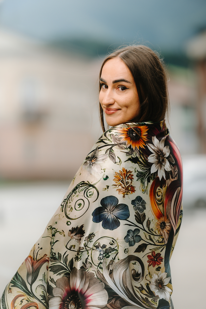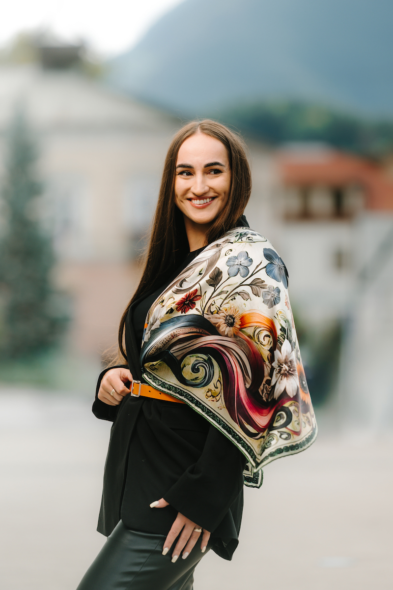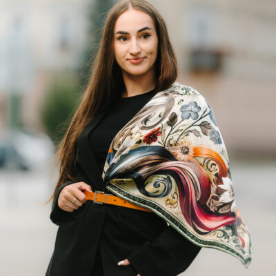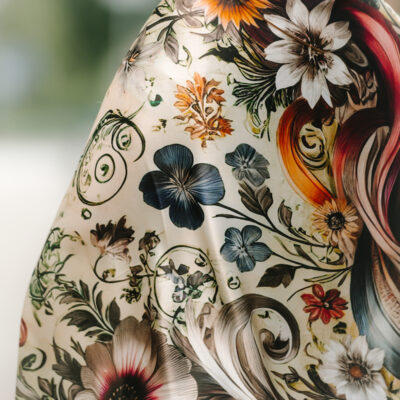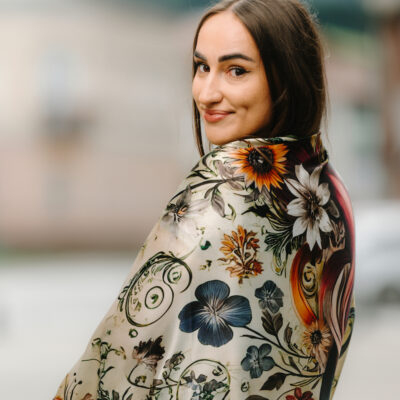 Hodvábne šatky s digitálnou potlačou sú stelesnením luxusu a štýlu, ktoré dodávajú outfitu pocit elegancie. Sú vyrobené z prírodného luxusného hodvábu typu CREPE SATEN , ktorý sa používa na výrobu našich šatiek s kvetinovými, zvieracími, abstraktnými a Slovenskými vzormi. Všetky naše kúsky hrdo vyrába firma VegaLM na Slovensku priamo v Liptovskom Mikuláši. Každá fáza, od výberu hodvábu až po remeselnú povrchovú úpravu, sa vykonáva s maximálnou starostlivosťou, aby sa zaručila dokonalosť