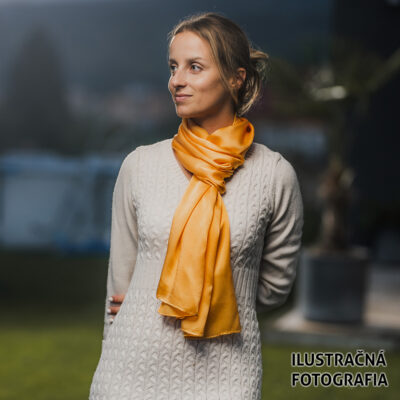 -klasická šatka okolo krku – vďaka vlastnostiam hodvábu je vhodné nosenie celoročne