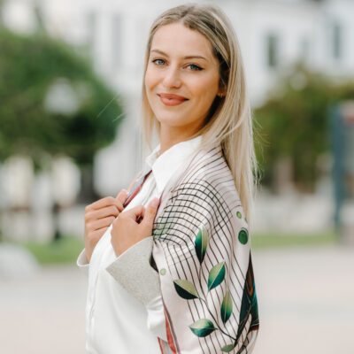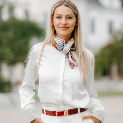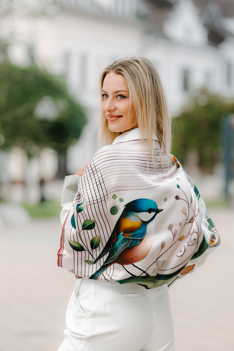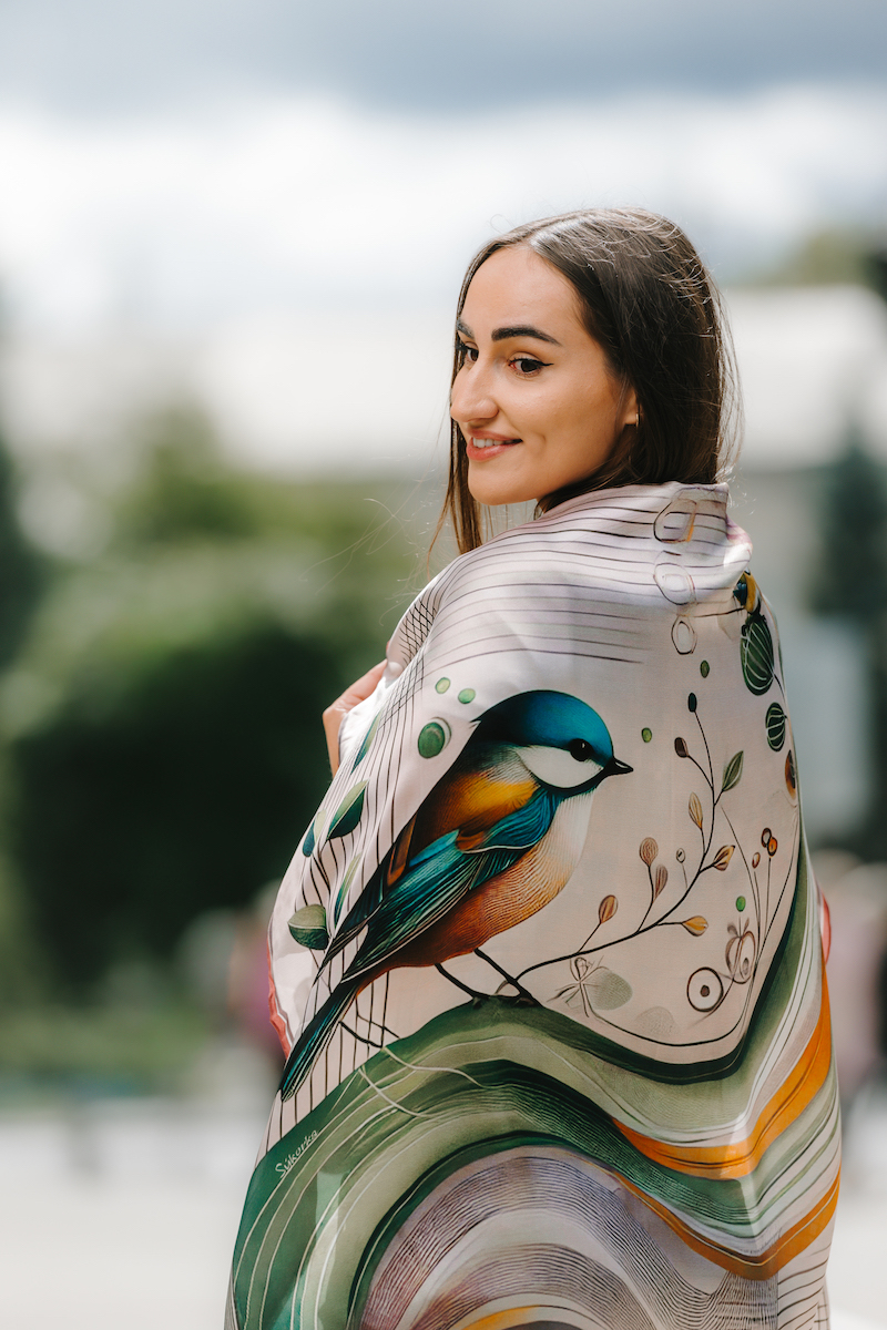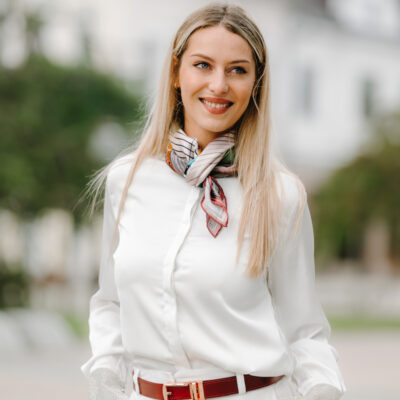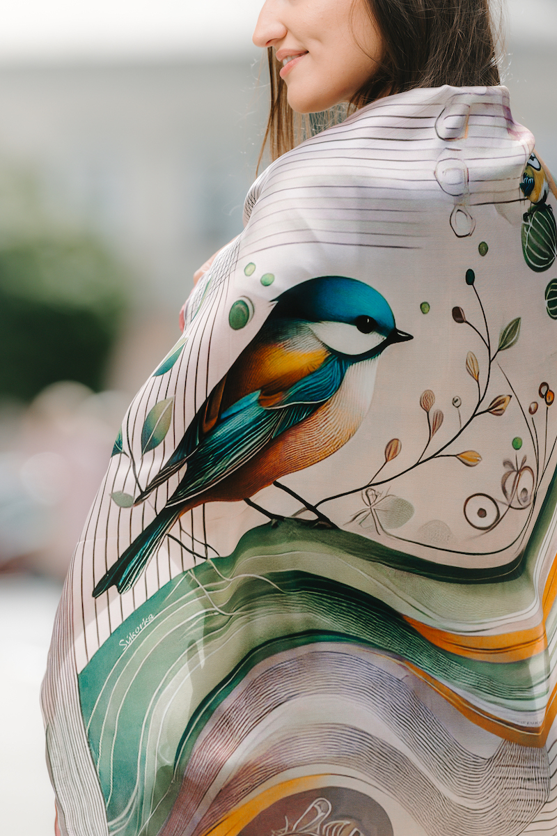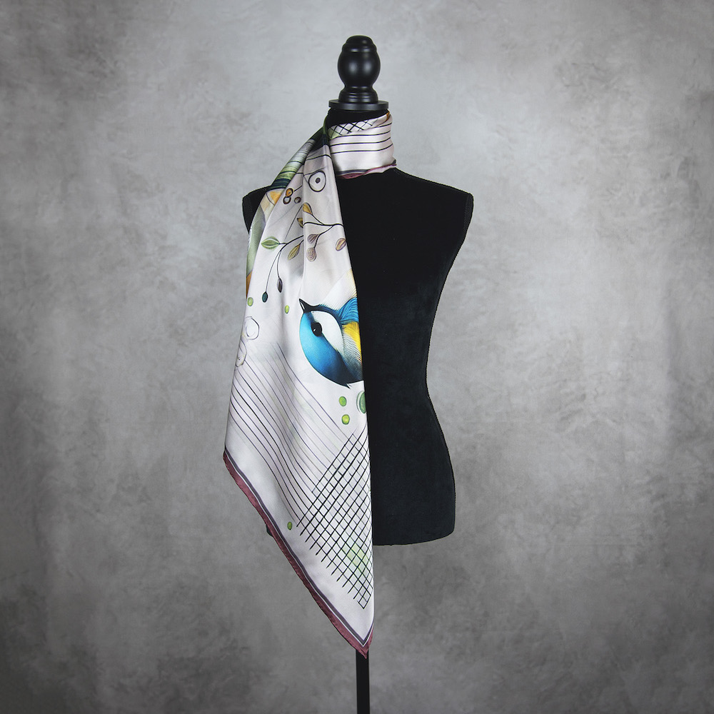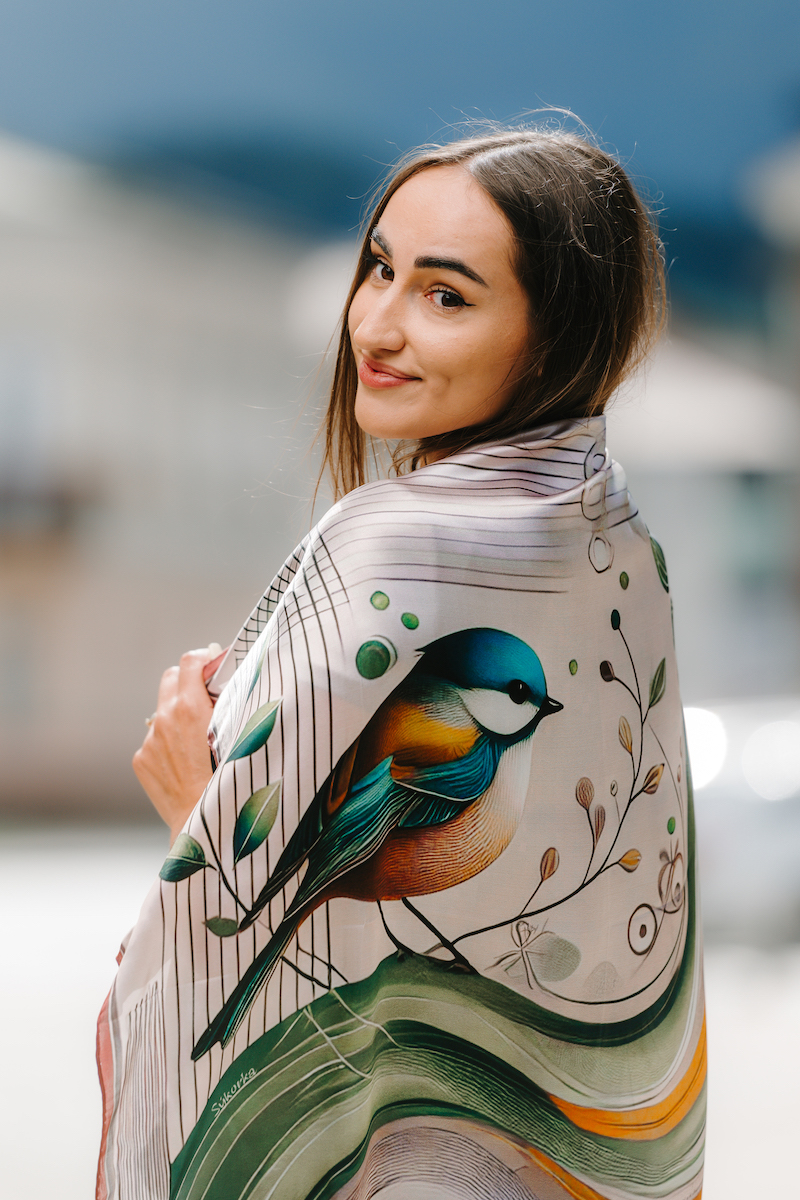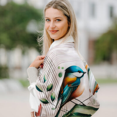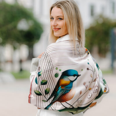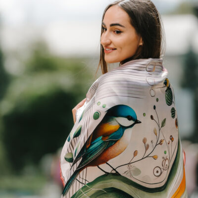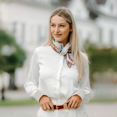 -klasická šatka okolo krku – vďaka vlastnostiam hodvábu je vhodné nosenie celoročne