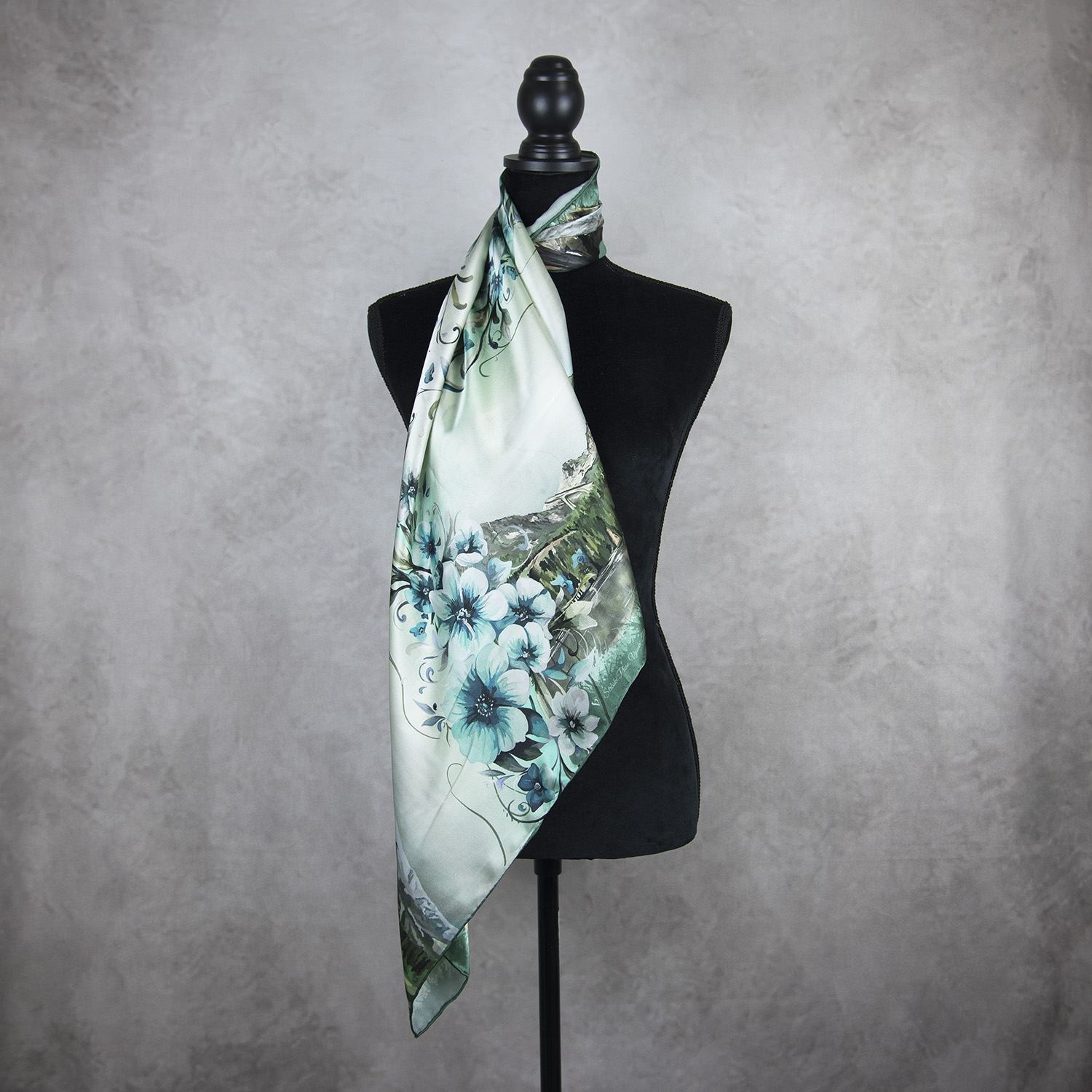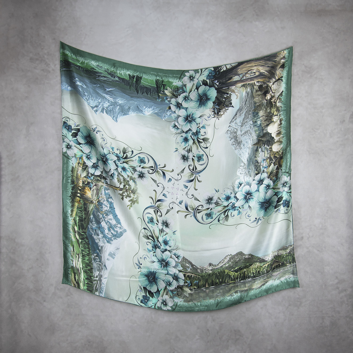 Hodvábna šatka VYSOKÉ TATRY – MÄTOVÉ, 90 x 90cm, Vyrobené na Slovensku