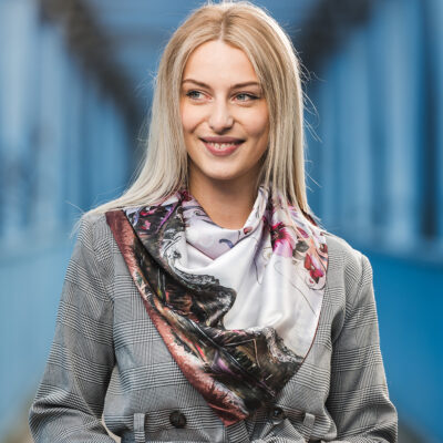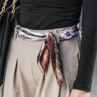 -klasická šatka okolo krku – vďaka vlastnostiam hodvábu je vhodné nosenie celoročne