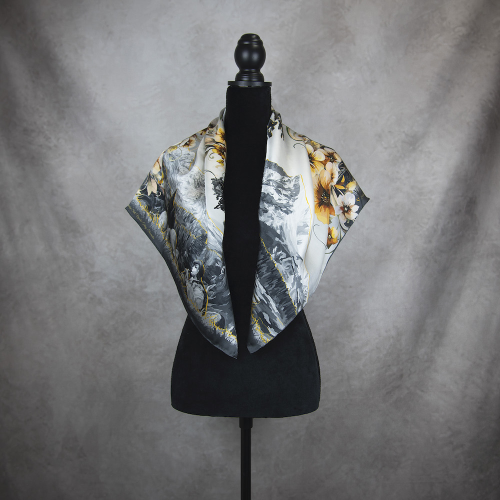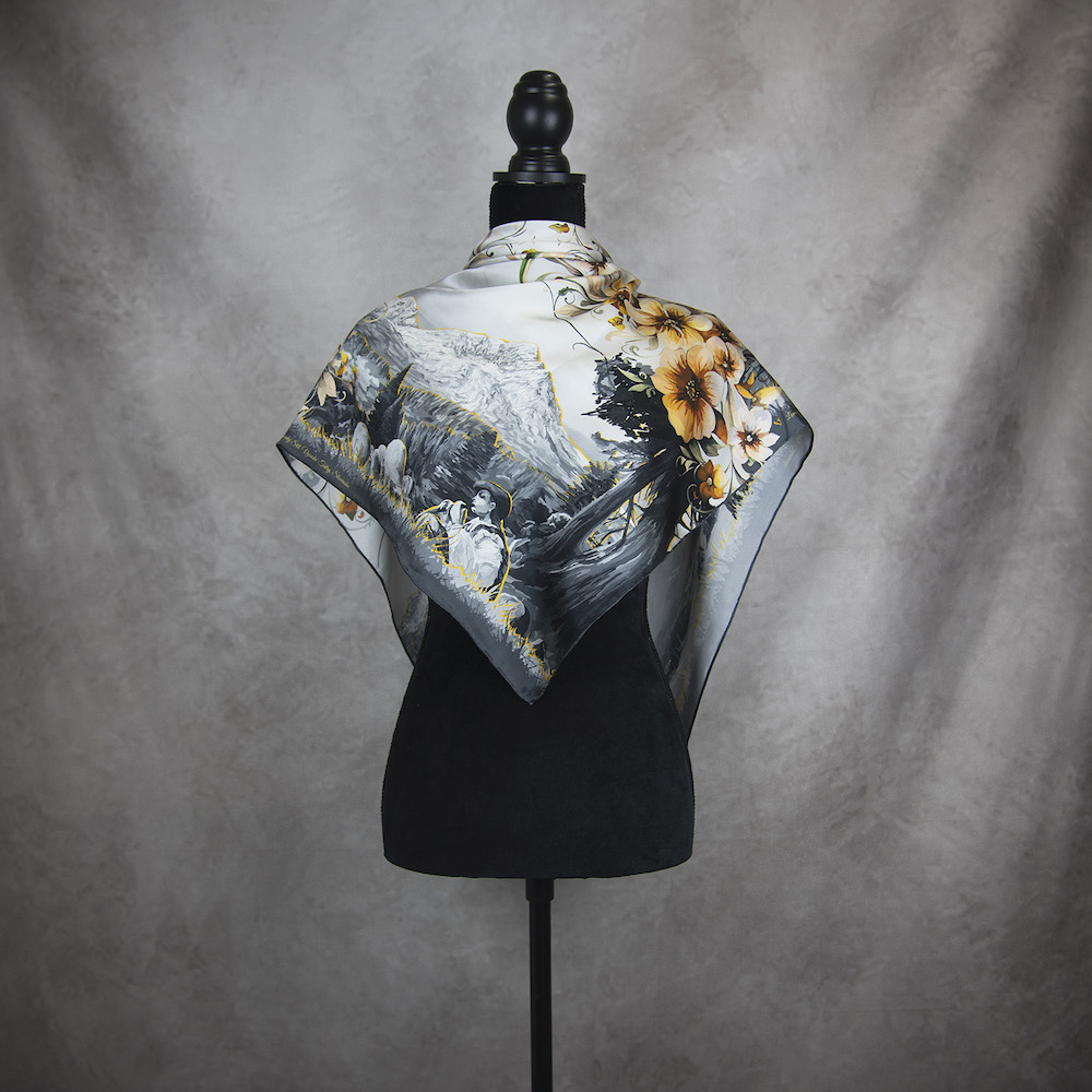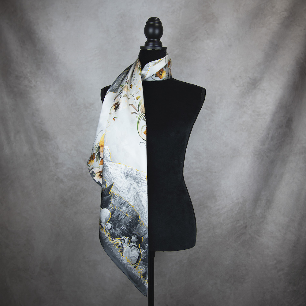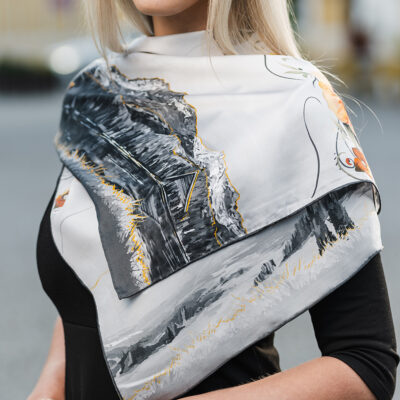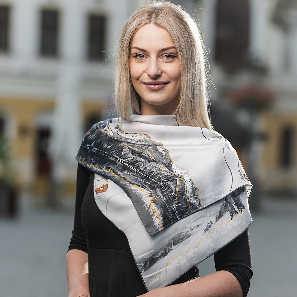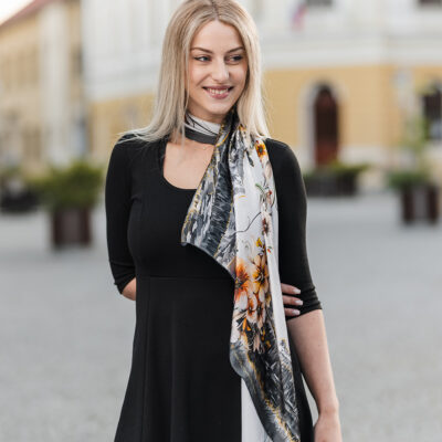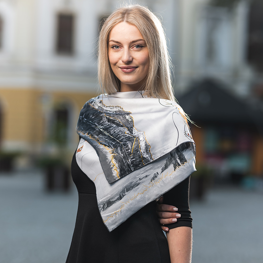 -klasická šatka okolo krku – vďaka vlastnostiam hodvábu je vhodné nosenie celoročne